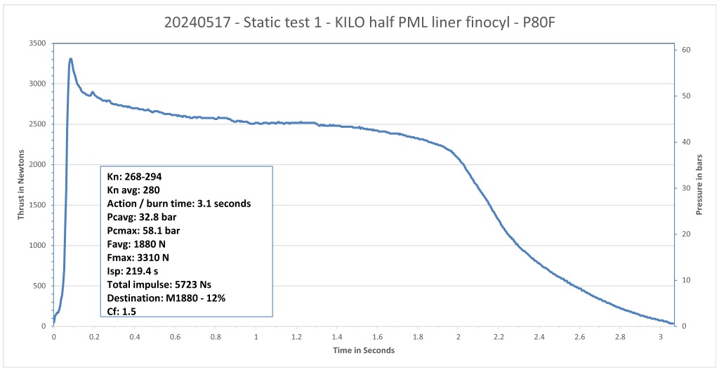 On May 17th 2024 the KILO half PML liner APCP motor was tested.